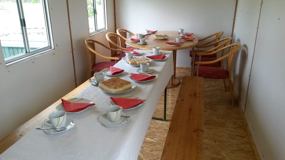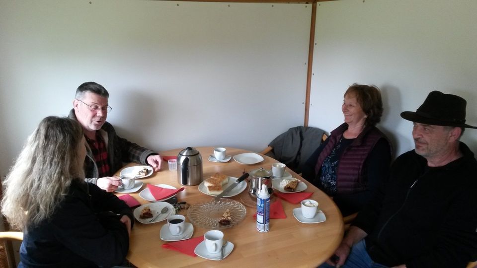 vergangenen zwei Wochenenden vom Wetter her nicht gepasst hatten, wurde jetzt bei den Modellfliegern die Saison offiziell eröffnet. Auch heute war das Wetter nicht ideal, es wechselten sich sonnige Abschnitte und kurze Regengüsse ab, doch die Temperaturen waren ganz angenehm. Auf das Grillen musste allerdings verzichtet werden. Dafür war im "Flughafenrestaurant" eine festliche Tafel gerichtet, wo der Verein zu Kaffee, Tee und Kuchen gebeten hatte. 15 Mitglieder bzw. Angehörige waren der Einladung gefolgt und konnten sich prächtig unterhalten, so dass der Vorsitzende ganz zufrieden war, den Termin nicht noch einmal abgesagt zu haben. Sogar einige Flieger waren trotz des durchwachsenen Wetters in der Luft. Nun hoffen alle, dass das Jahr noch viele schöne Flugtage bringt.