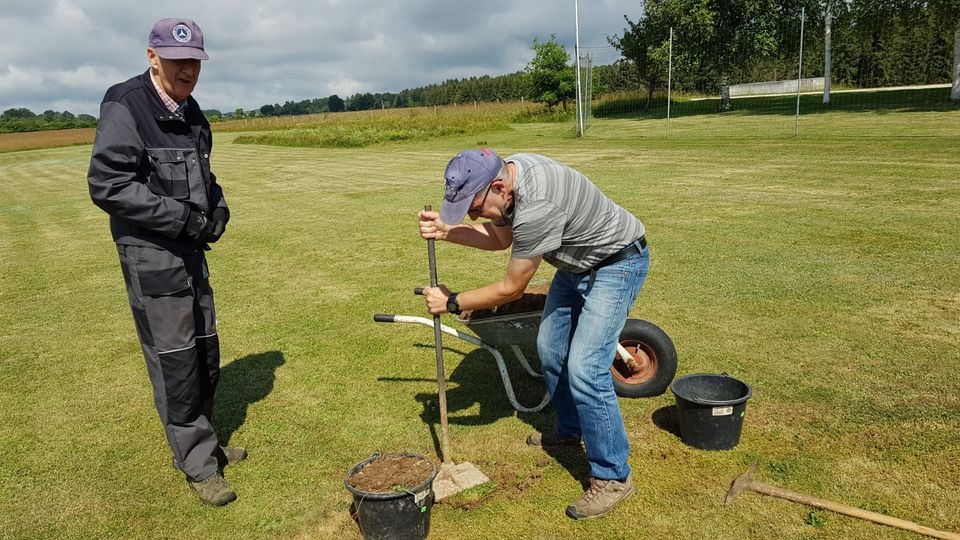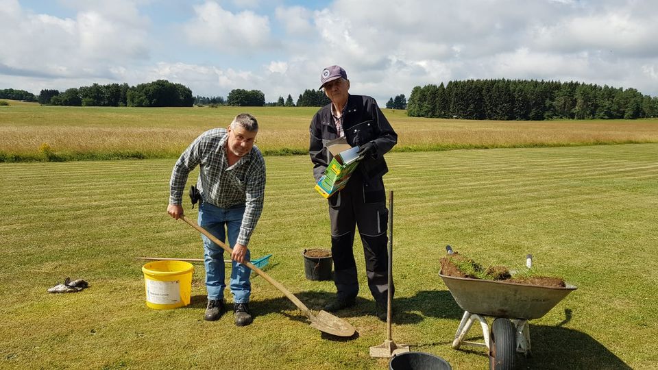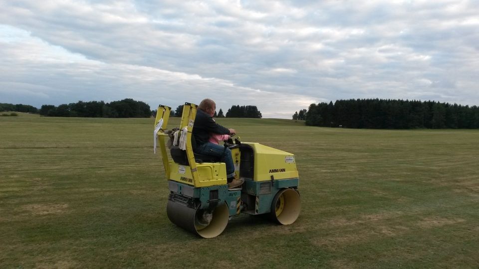 Nachdem gelegentlich Klagen kamen, dass Löcher in der Startbahn auf unserem Platz vorhanden sind und für Start und Landung eine Gefahr darstellen, wurde kurzfristig ein kleiner Arbeitsdienst angesetzt. In kleiner Besetzung konnten Unebenheiten wieder beseitigt werden, indem kleinere Löcher mit Erde und größere mit kleinen Rasenstücken aus Randbereichen gefüllt wurden. Gut verdichtet und frisch mit Rasensamen eingesät wurde noch mit der Gießkanne angegossen. Zwischenzeitlich wurde der Platz auch gewalzt, so dass wieder eine plane Fläche zum Starten und Landen zur Verfügung steht..